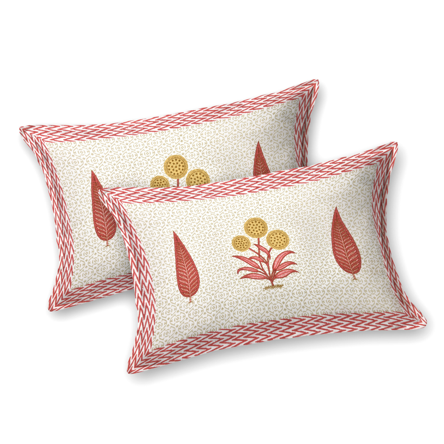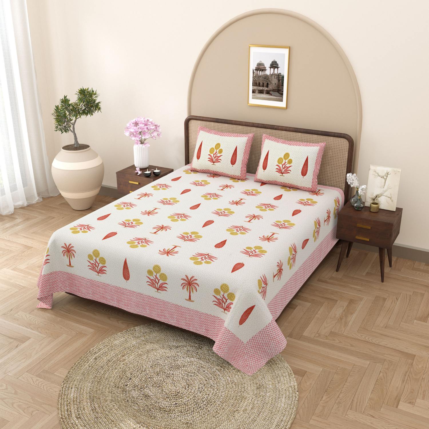 Gulmohar Peach Palms Pure Cotton Double Bedsheet with 2 Pillow Covers