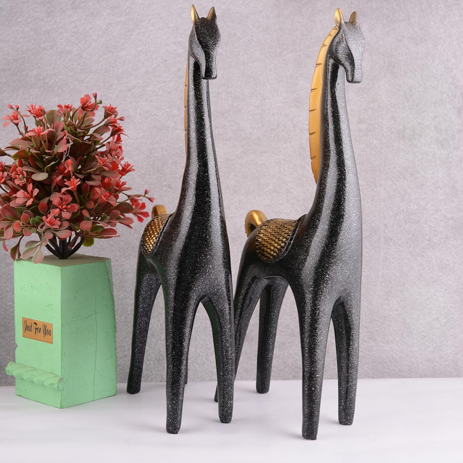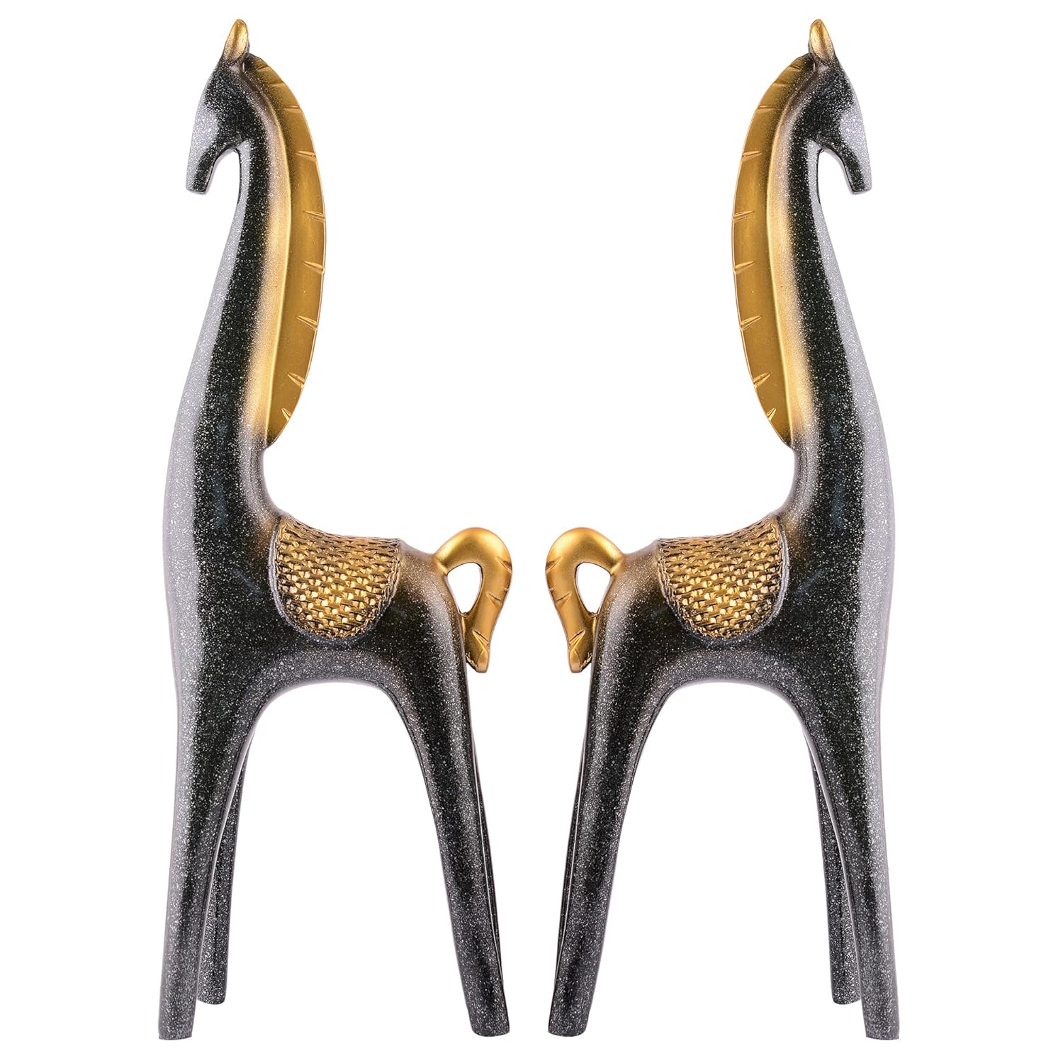 - SET CONTENTS: Includes two matching horse figurines with graceful, elongated necks and stylised design