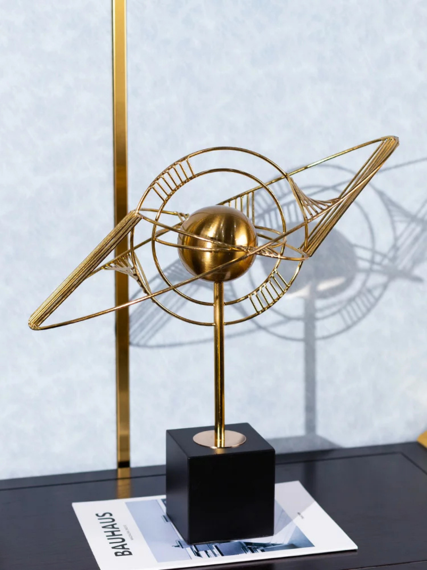 - Striking metal abstract sculpture inspired by planetary orbits, crafted to elevate modern interiors