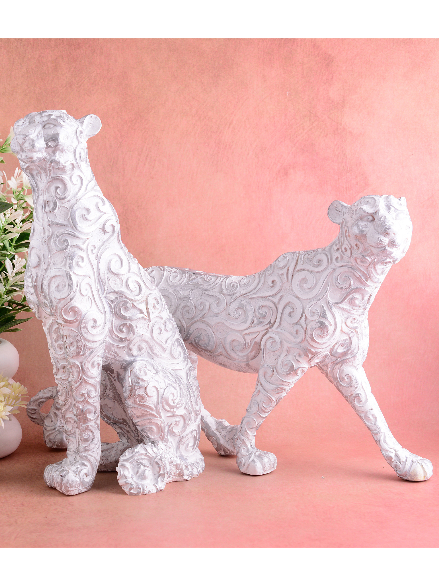 - Elegant Design: Beautifully crafted leopard pair sculpture with intricate swirl patterns, symbolizing grace and power.