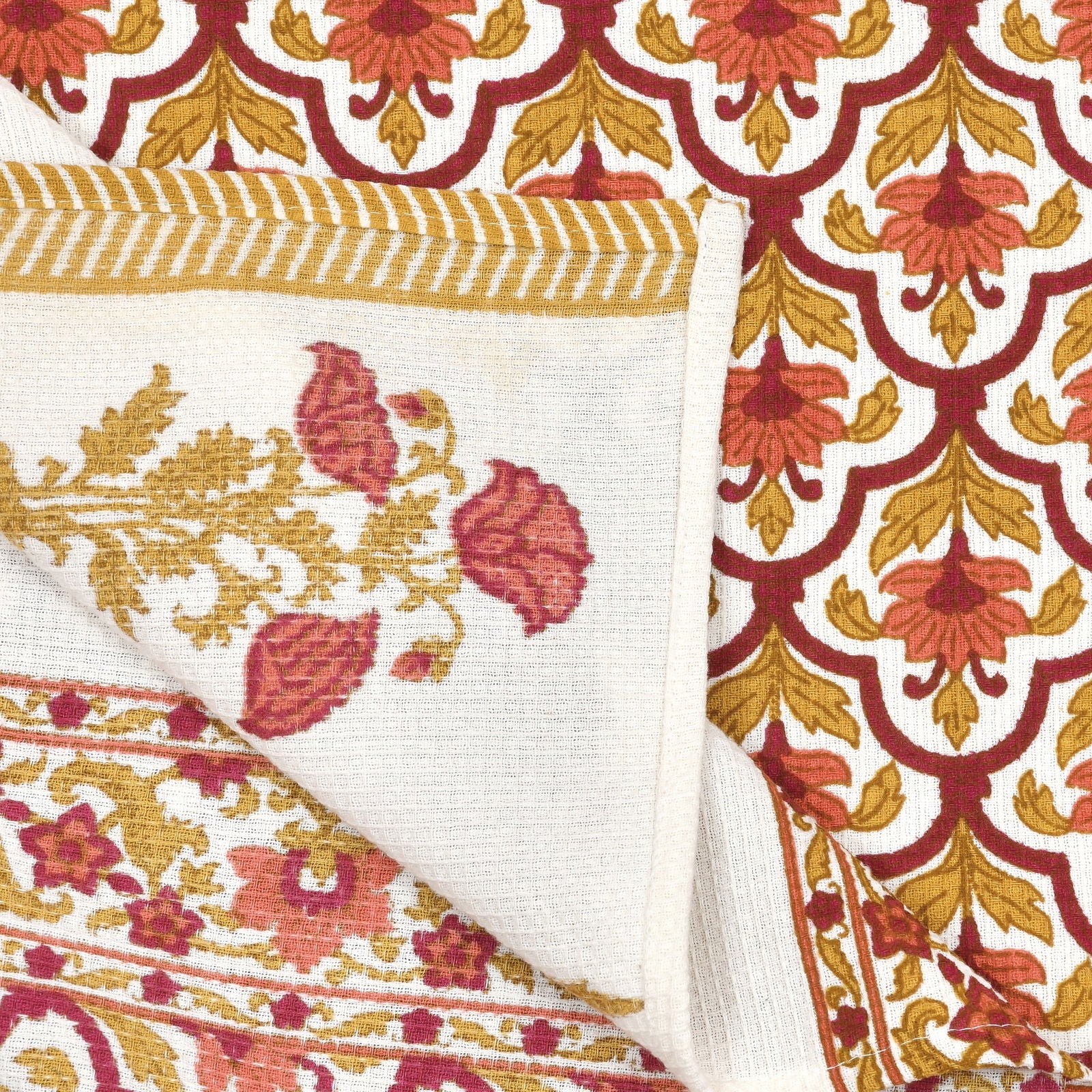 - Hand Block Towels feature unique and artistic hand block print designs, adding charm to your bathroom decor. Waffle Towels offer a luxurious and textured feel, with enhanced water absorbency for quick drying.