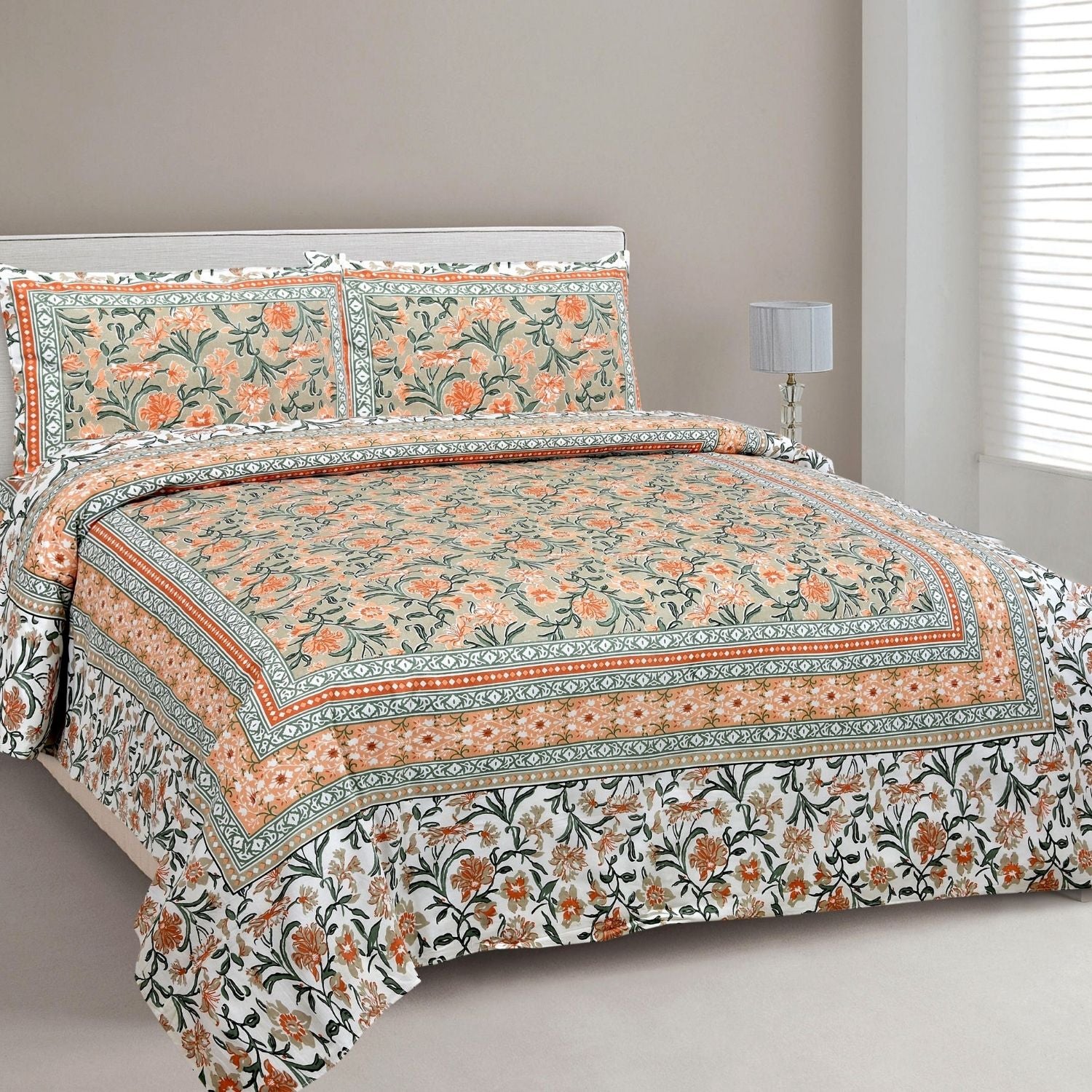 Gulistan Garden – Ethnic Jaipuri Printed Bedsheet Set with Pillow Covers
