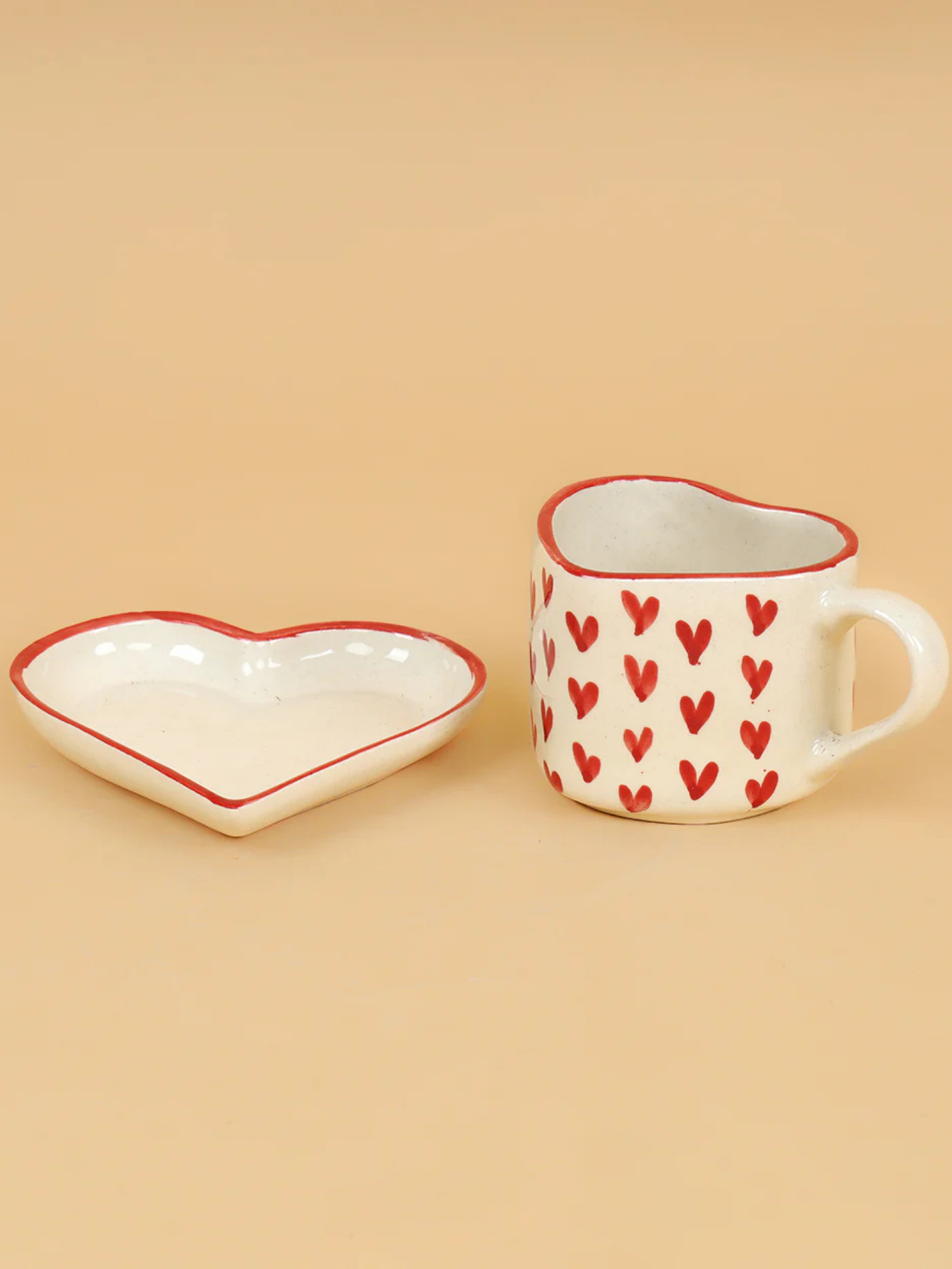 - Handcrafted ceramic mug with matching heart-shaped plate ❤️