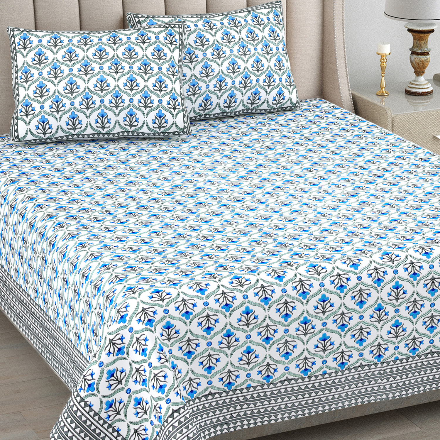 Kalakriti Indigo Charm Pure Cotton Double Bedsheet with 2 Pillow Covers