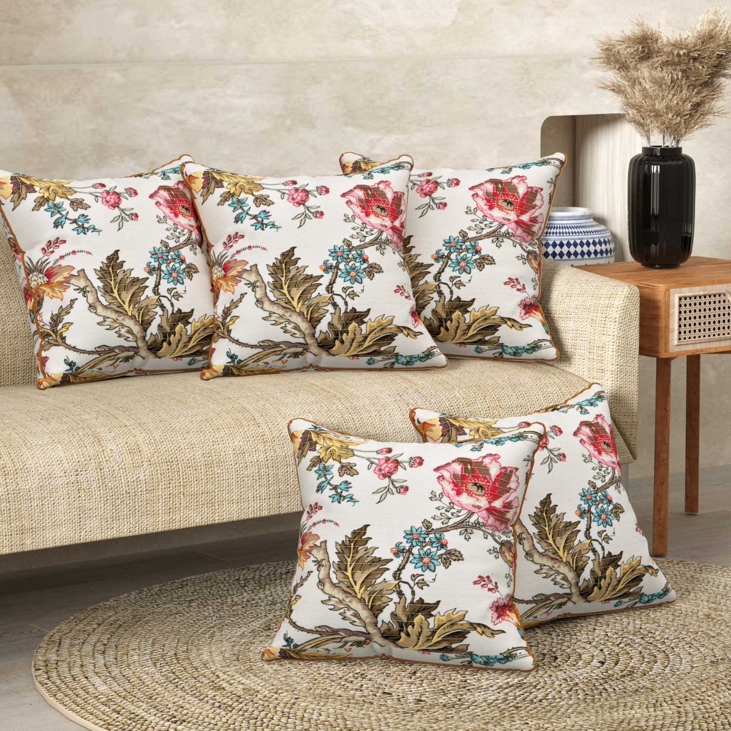 Transform your living space into a whimsical European garden with our flower-themed cushion covers – like placing a blooming bouquet right on your sofa. -