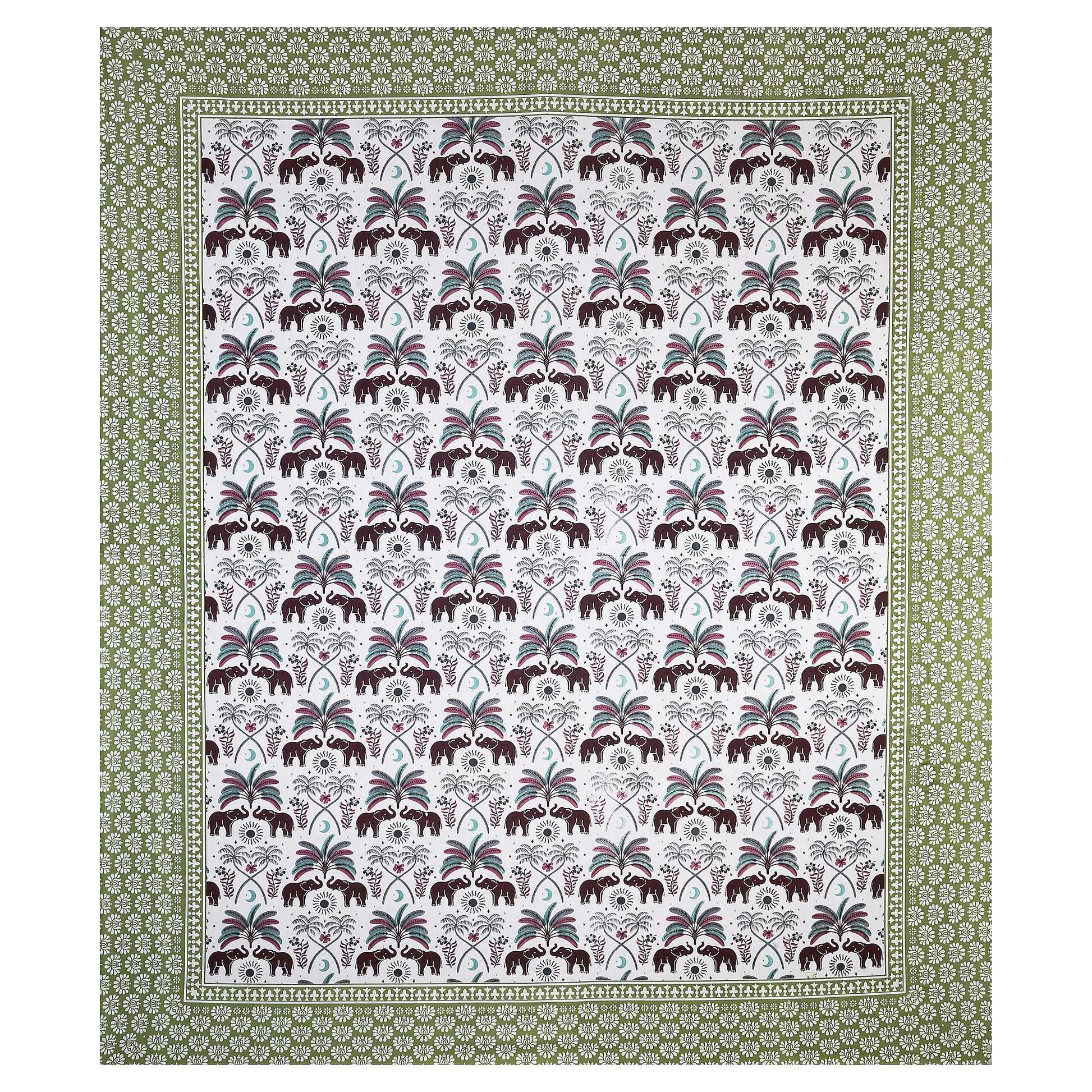 Royal Elephant Parade – Premium Cotton Jaipuri Printed Double Bedsheet with 2 Pillow Covers
