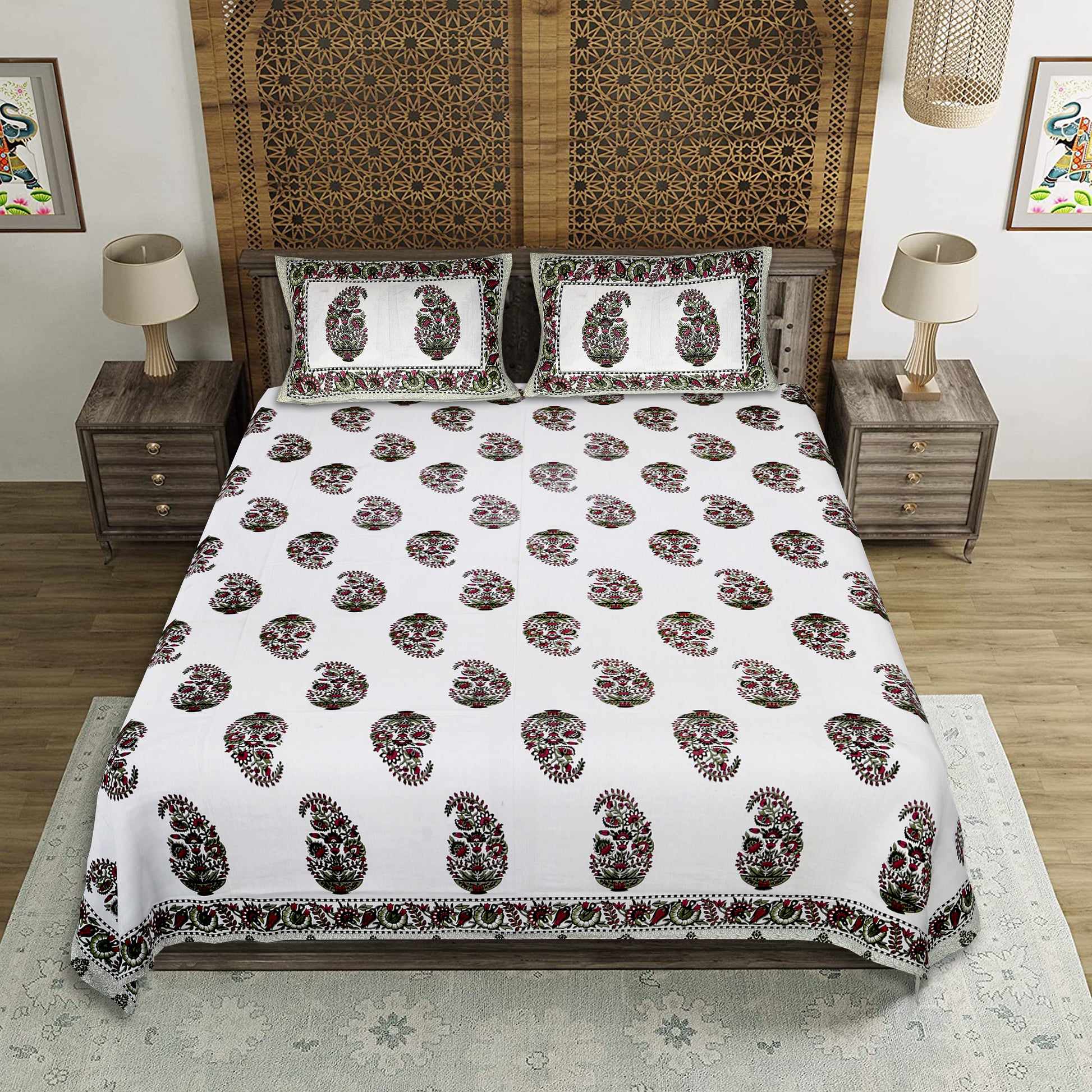 Royal Reverie – Premium Cotton Jaipuri Printed Double Bedsheet with 2 Pillow Covers