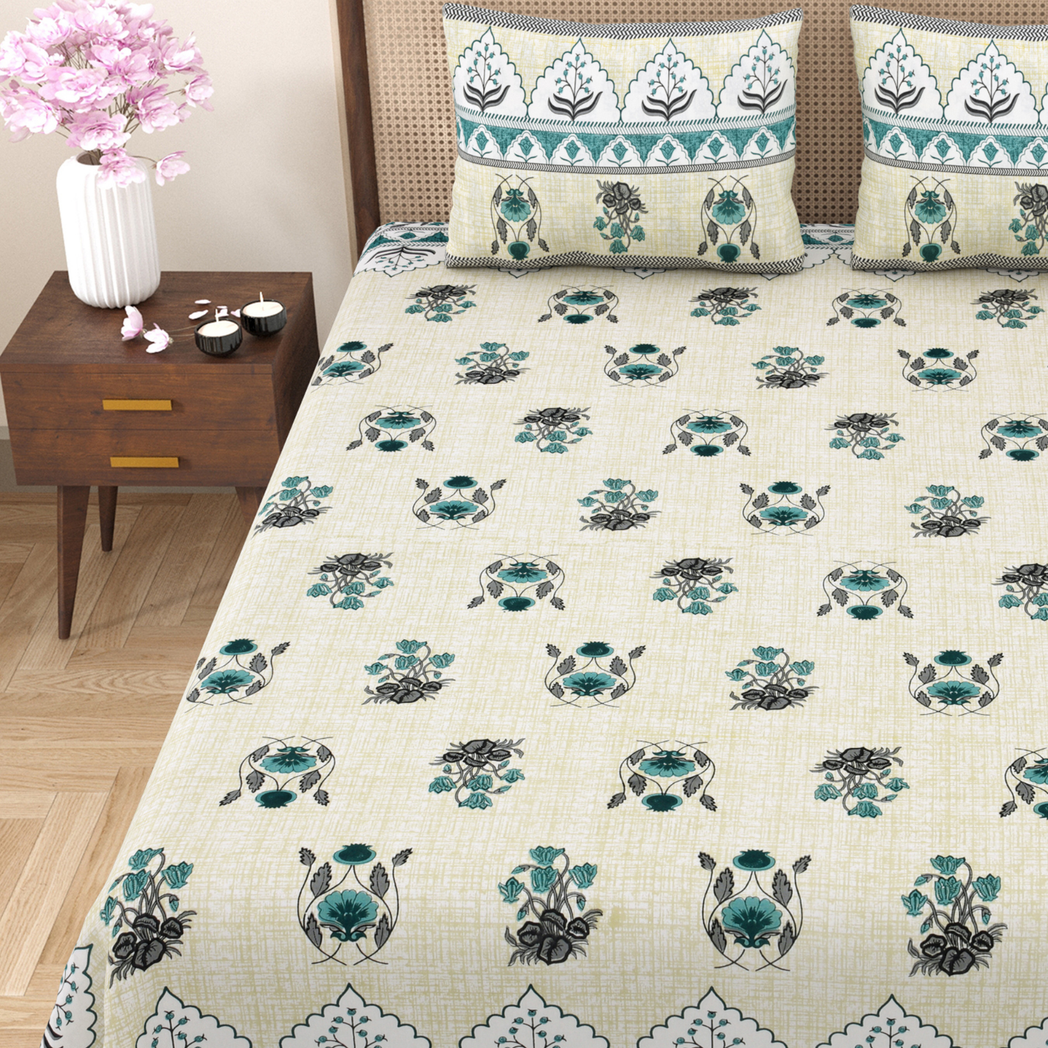 Gulmohar Spice Garden Pure Cotton Double Bedsheet with 2 Pillow Covers