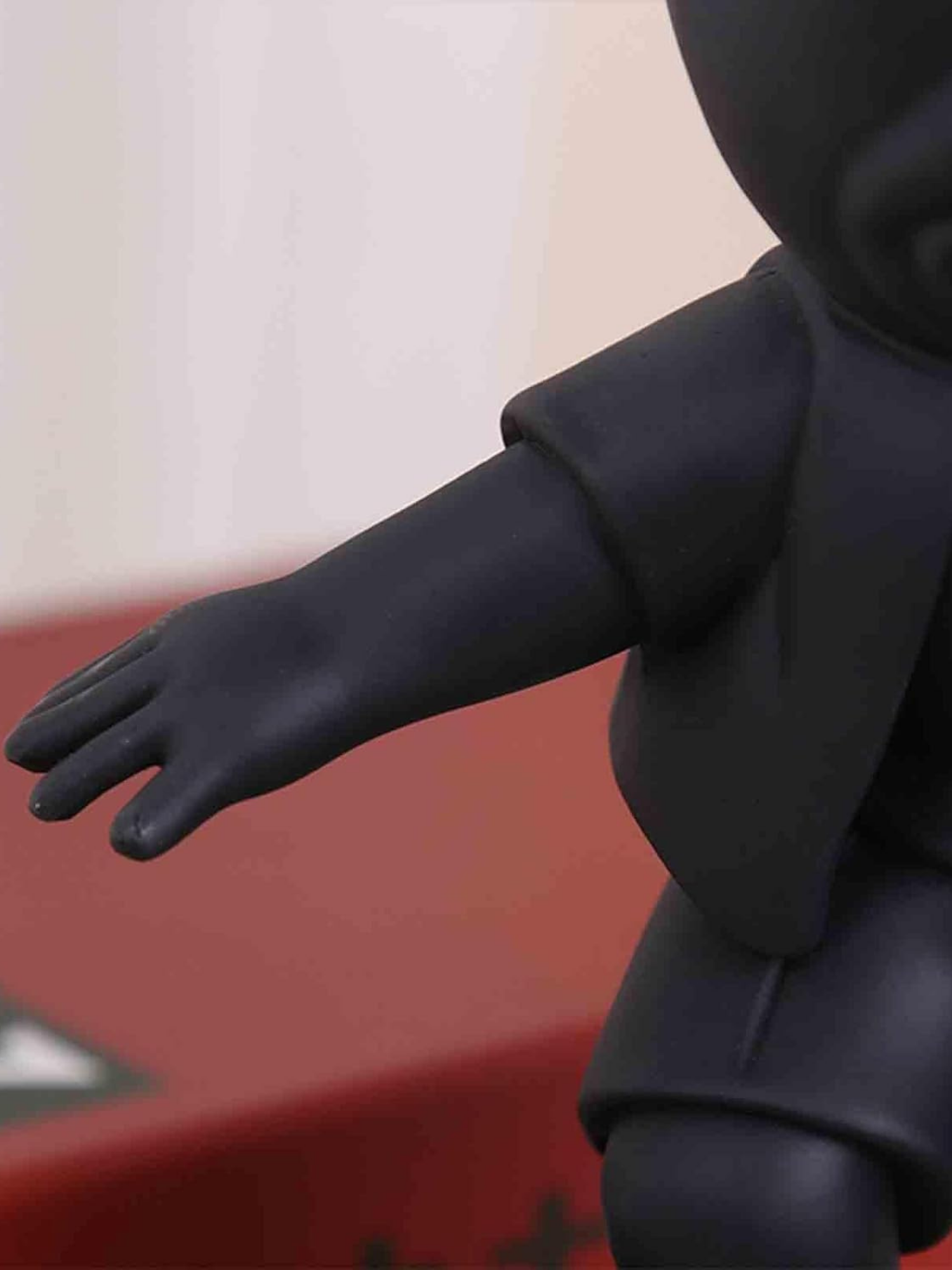 - Features a matte black finish with gold detailing on shoes, sunglasses, and tray for a premium imported look