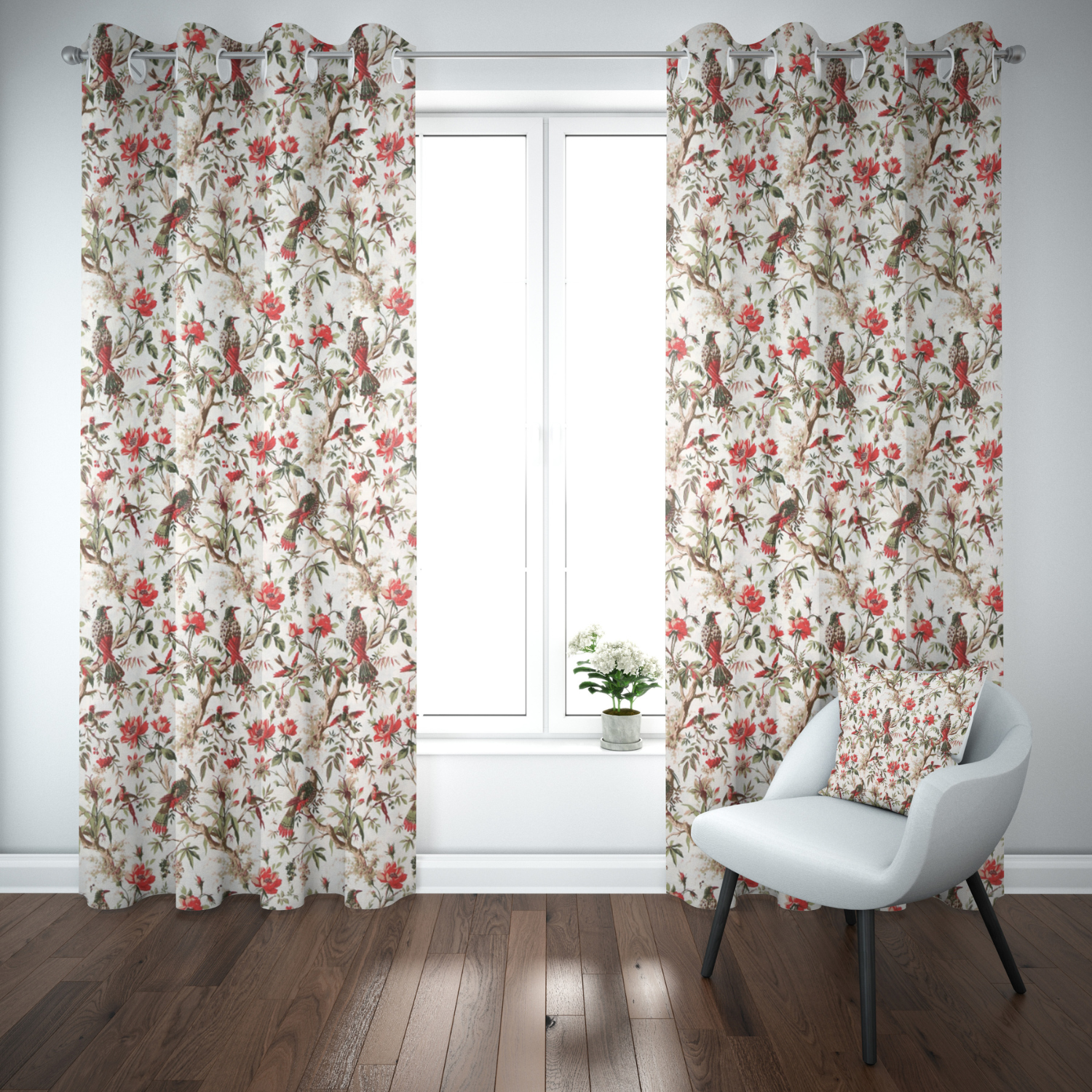 BOTANICAL BIRDS ANOKHI HOME WINDOW CURTAIN 9 FEET LONG X 3.75 WIDTH PAIR