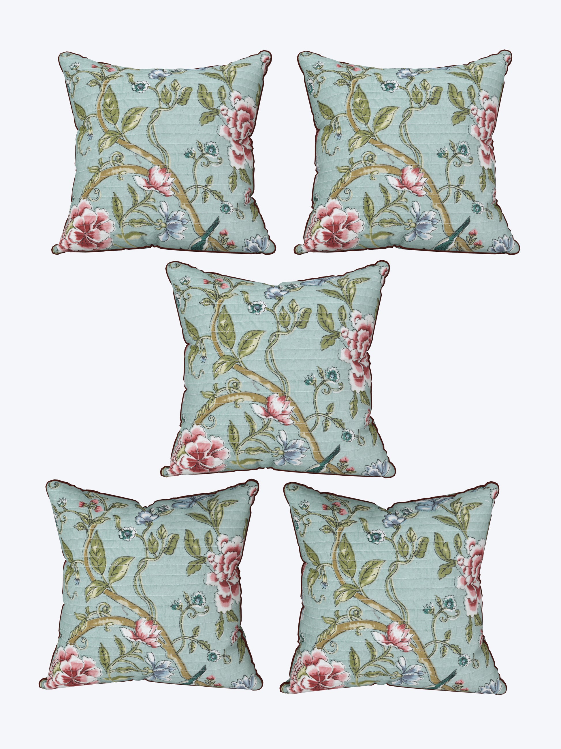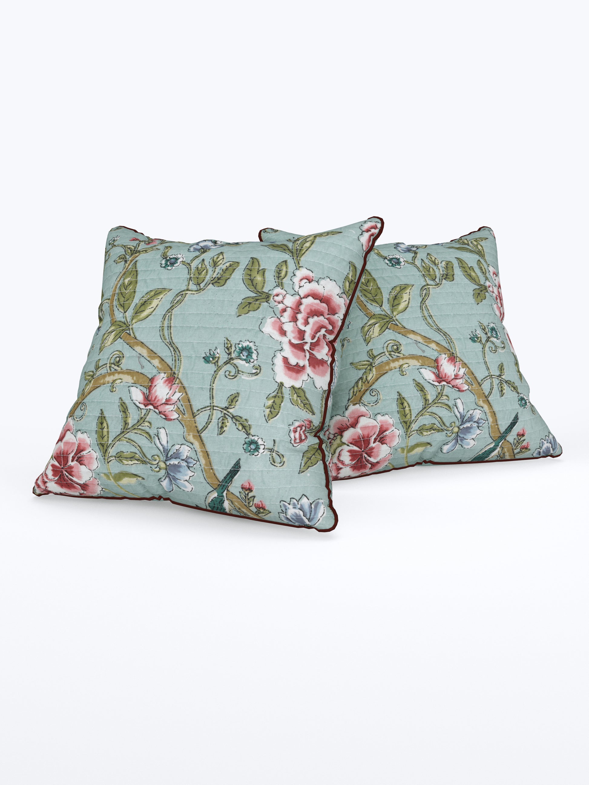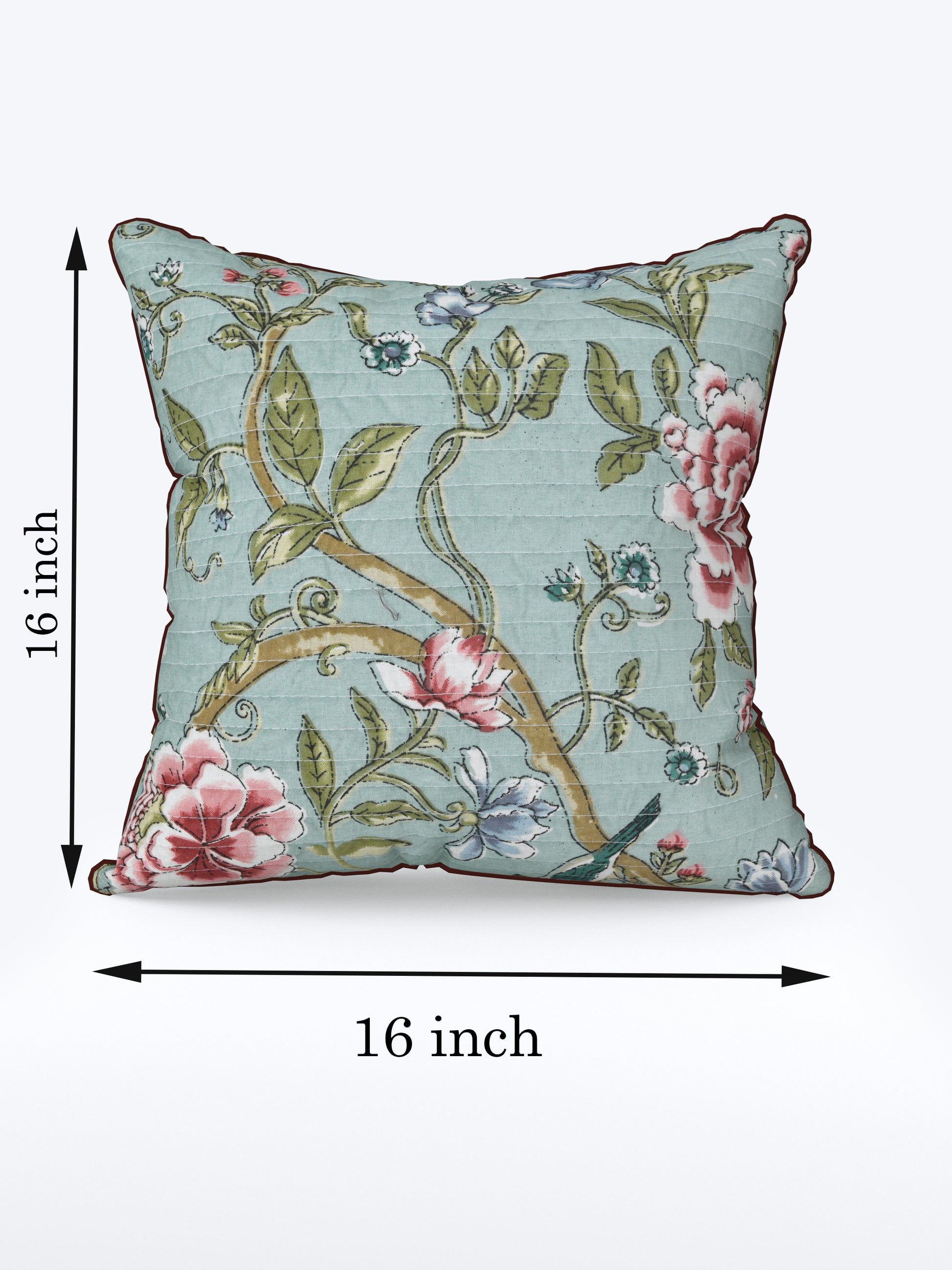Teal Phoolvalli Anokhi Cotton Cushion Covers - 16x16 Inches