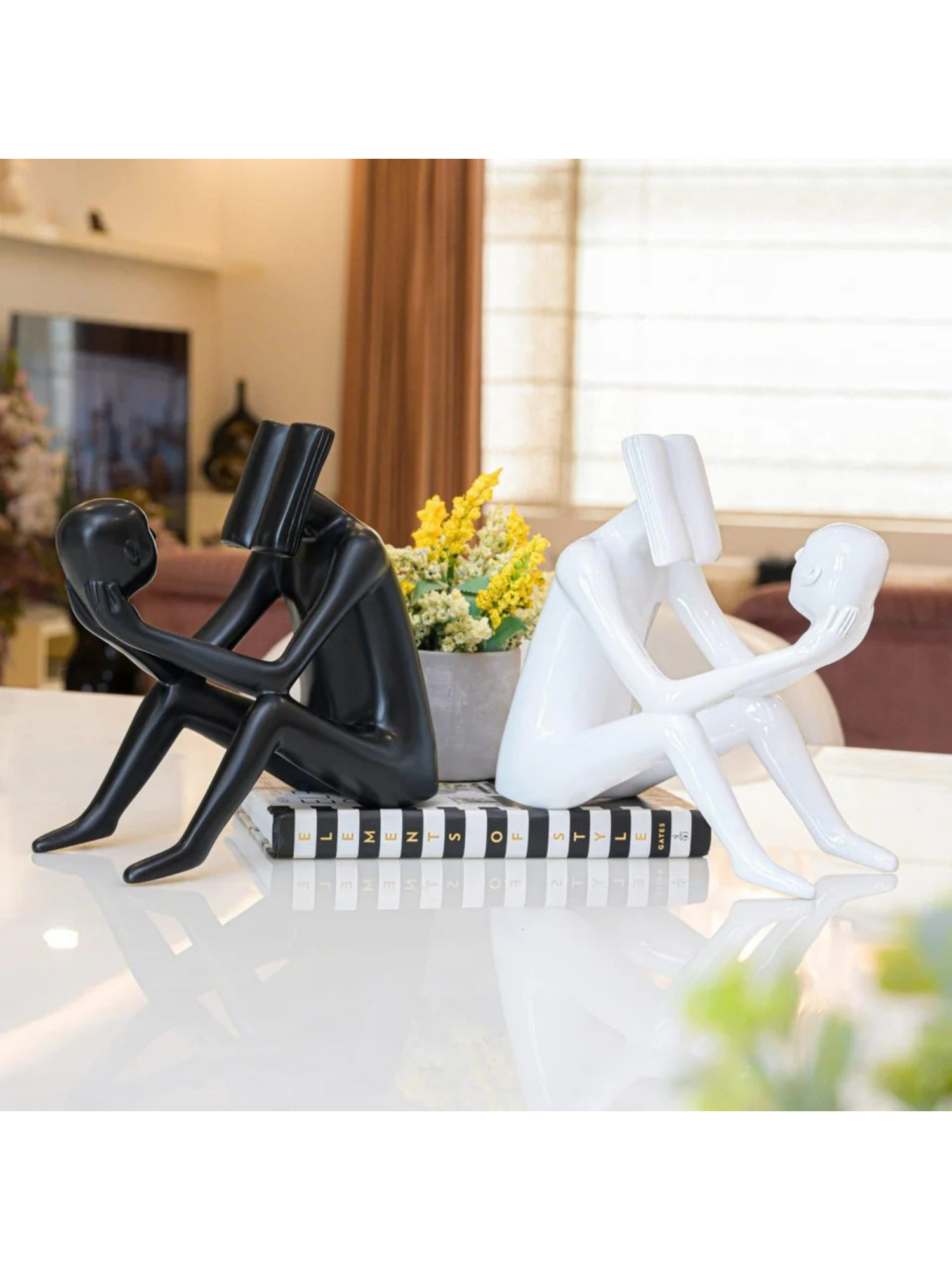 - Comes as a set of two figurines in contrasting black and white finishes.