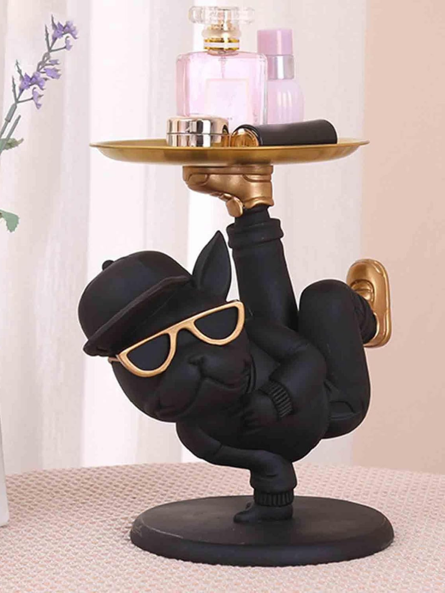 - Bold and playful bulldog showpiece with a balancing tray, designed to make a statement
