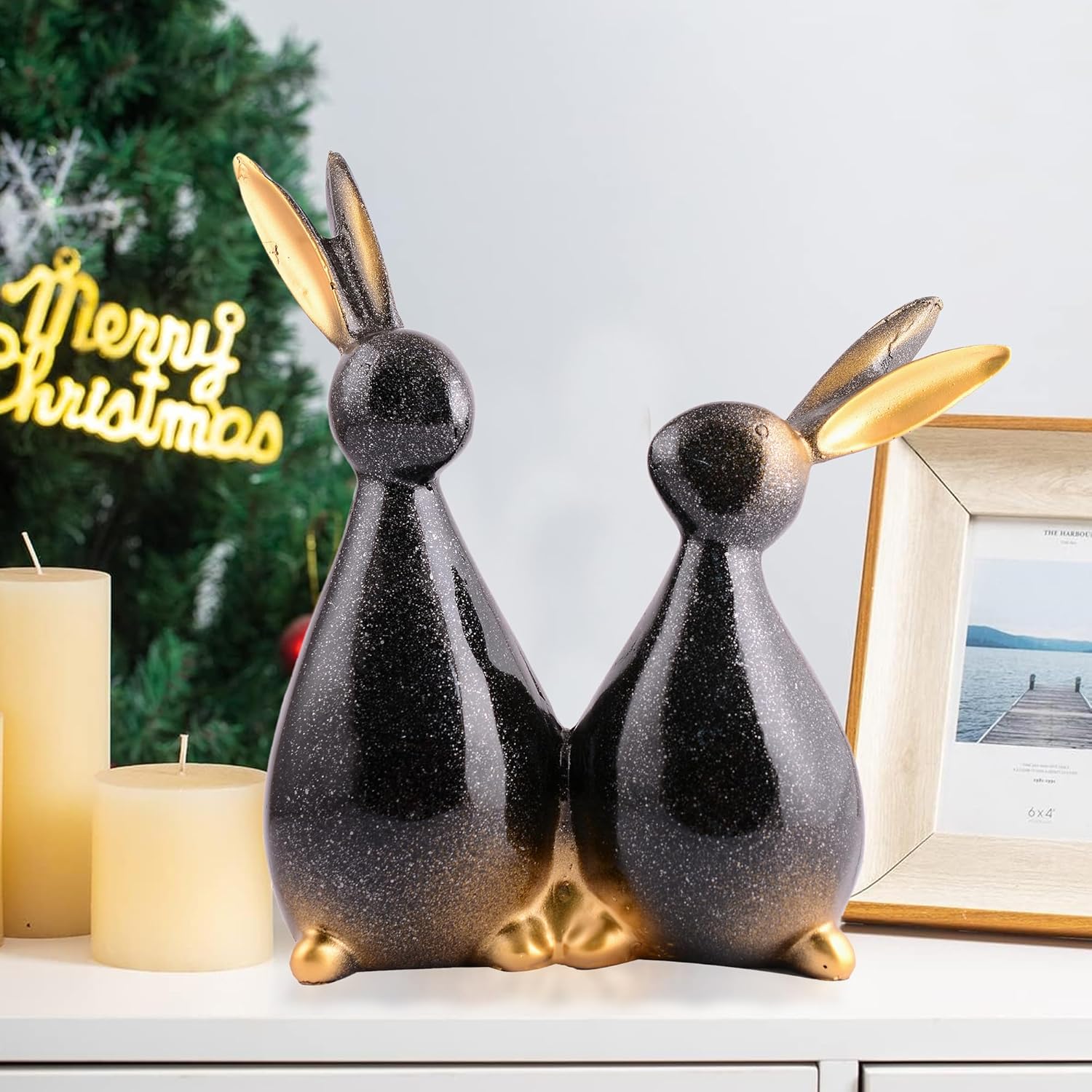 - DESIGN: Features a charming pair of rabbit figurines with elegant black sparkle finish and luxurious gold accents